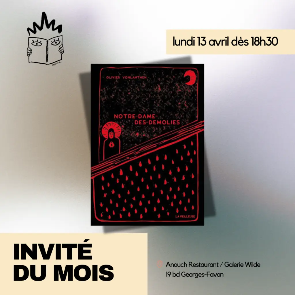 Le 13 avril, nous serons accompagné·es d’Olivier Vonlanthen, qui viendra nous présenter son livre Notre-Dame-des-Démolies, à l’occasion d’un club de lecture ayant pour thème « Ce que les faits divers disent de la société ».